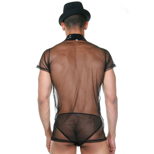 LGBTQ Pride Costume Gay Lingerie - Sexy Transparent Tulle Short Sleeve Sheer Shirt Panties Set for Men - See Through Gift for Him