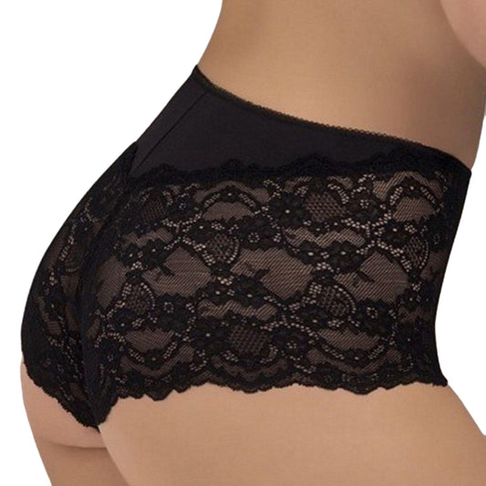 High Waisted Shortie Panty - Brief Panties with Side and Back Lace - Vintage Panties Underwear - Women's Semi Sheer Ultra Comfort Sexy Brief