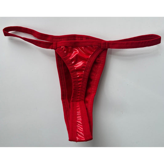 Latex Zipper Panties Thong - Lacquer Leather Open Crotch Panty - Red String - Micro G-String Zipper Crotch