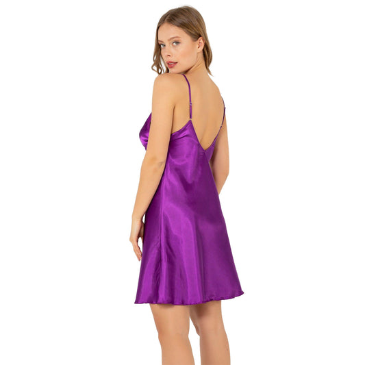 Open Back Mini Satin Sexy Lingerie - Women's Deep Slit Nightwear with Magnific Guipure - Satin Chemise W/ Elegant Details
