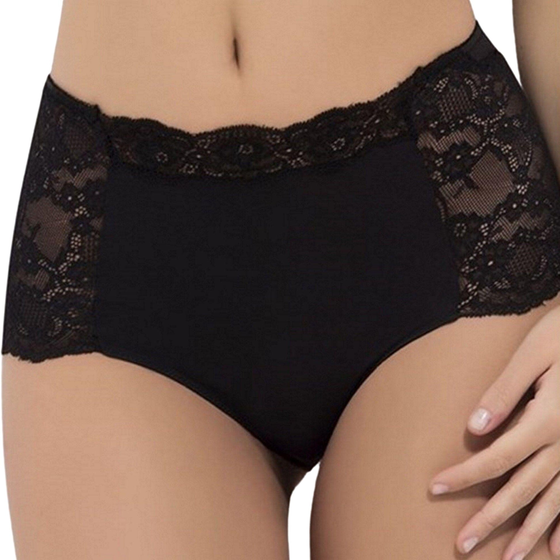 High Waisted Shortie Panty - Brief Panties with Side and Back Lace - Vintage Panties Underwear - Women's Semi Sheer Ultra Comfort Sexy Brief