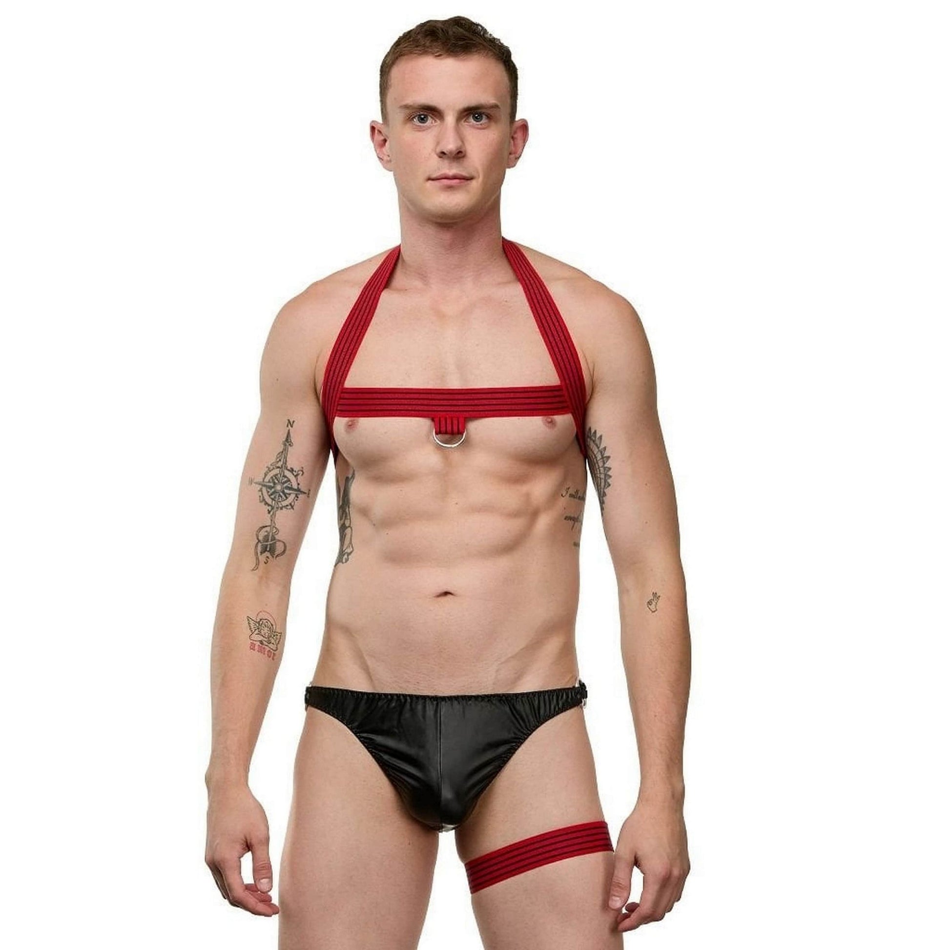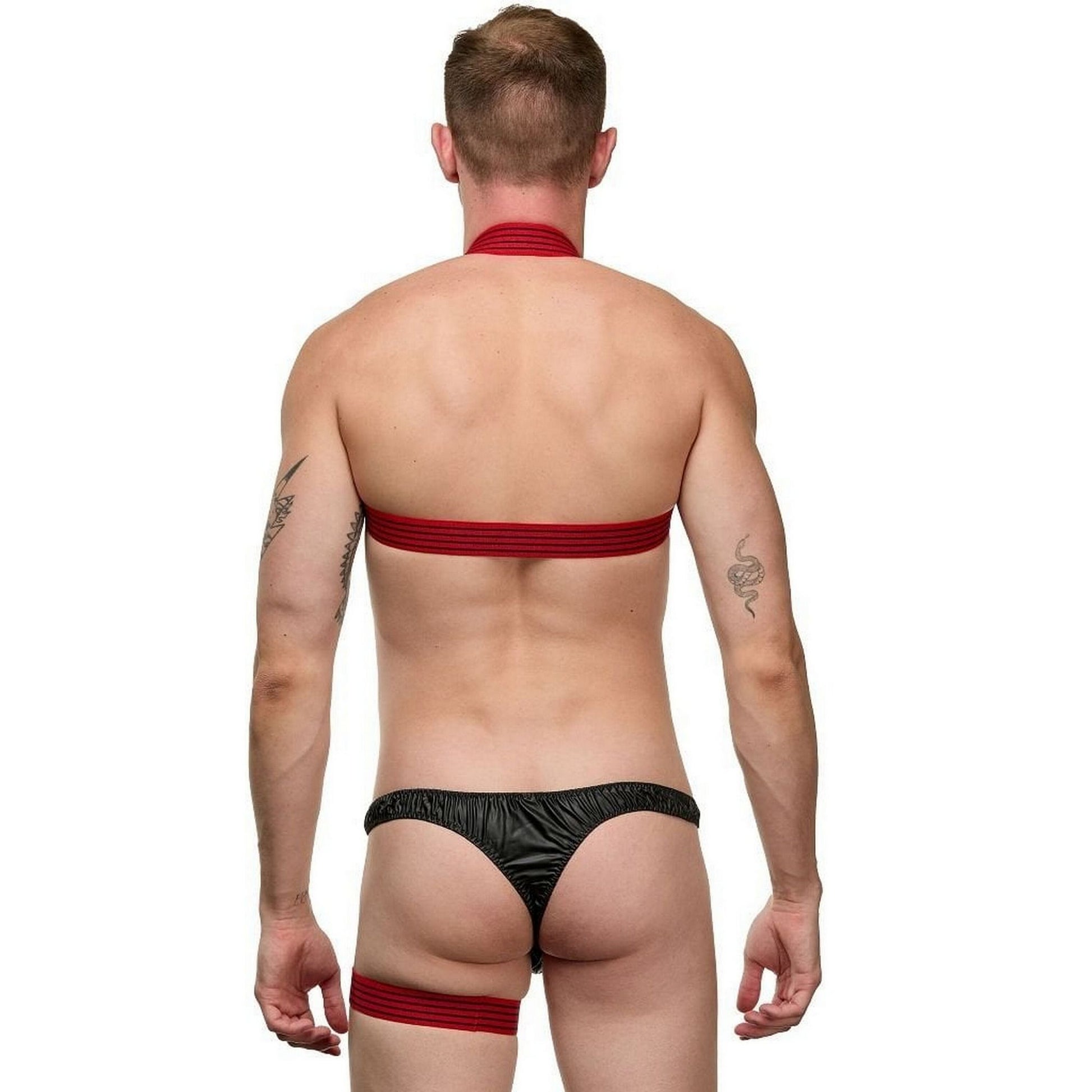 Men’s Stripper Fantasy Costume Intimate Instincts Red & Black Sexy LGBTQ Pride Costume - BDSM Life Costume - Gift for Gay Man