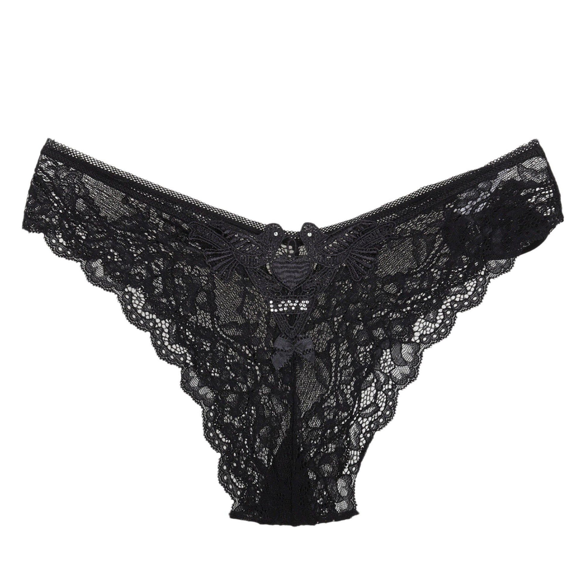 Sheer Brief Guipure Bikini Women Panties - Extreme Comfort with Two Birds Motif Love on Back - Feminine Floral Pattern Soft Underwear