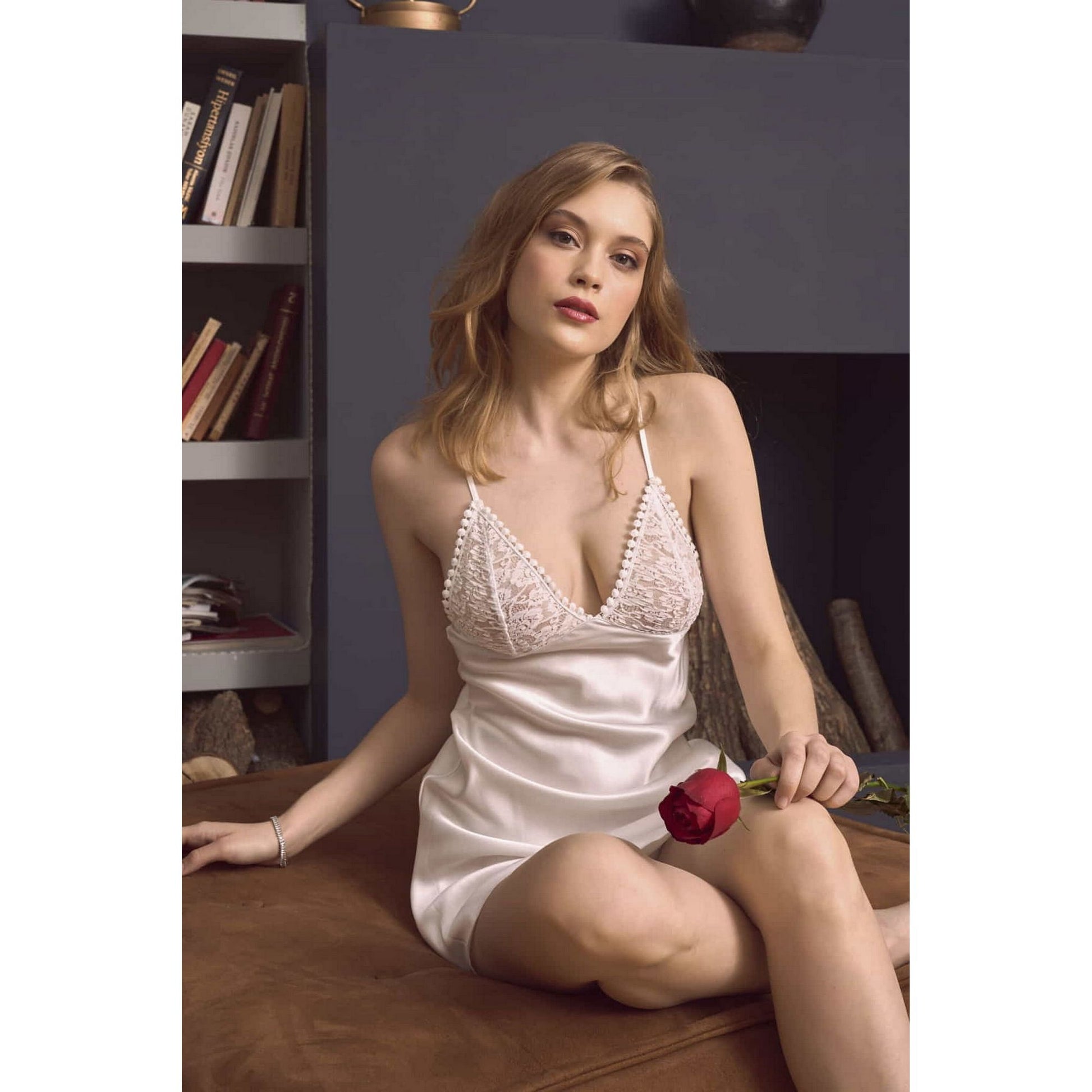 If you are looking for a babydoll for a wedding night or a white bridal lingerie for a wedding night this sexy babydoll is perfect for you! Wire-free V-neckline provides elegance. Lace details on the cupless bra area are strategically placed for a sexy look. Choose this babydoll for a wedding night and make hearts melt in this satin baby doll with lace cups.